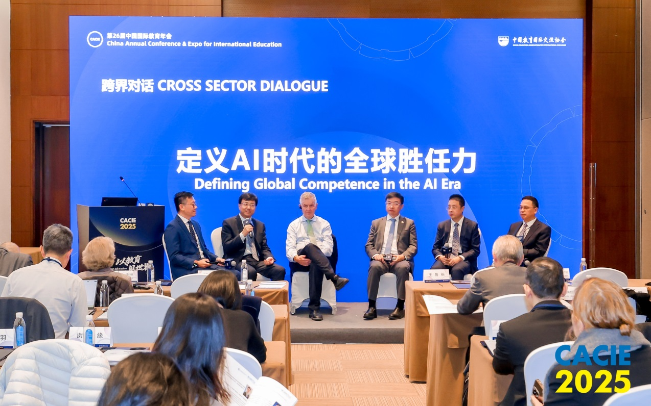 在“跨界对话:定义AI时代的全球胜任力 ”环节中,徐永林作为对话嘉宾,围绕人工智能对国际经贸格局的影响、未来国际组织人才能力结构及其培养的新要求发表见解。在交流中,他重点介绍了我校在国际组织人才培养方面的实践探索,强调通过“阶梯式、项目制、沉浸式”等多元培养体系,系统提升学生在复杂国际场景下的协商沟通与问题解决能力。